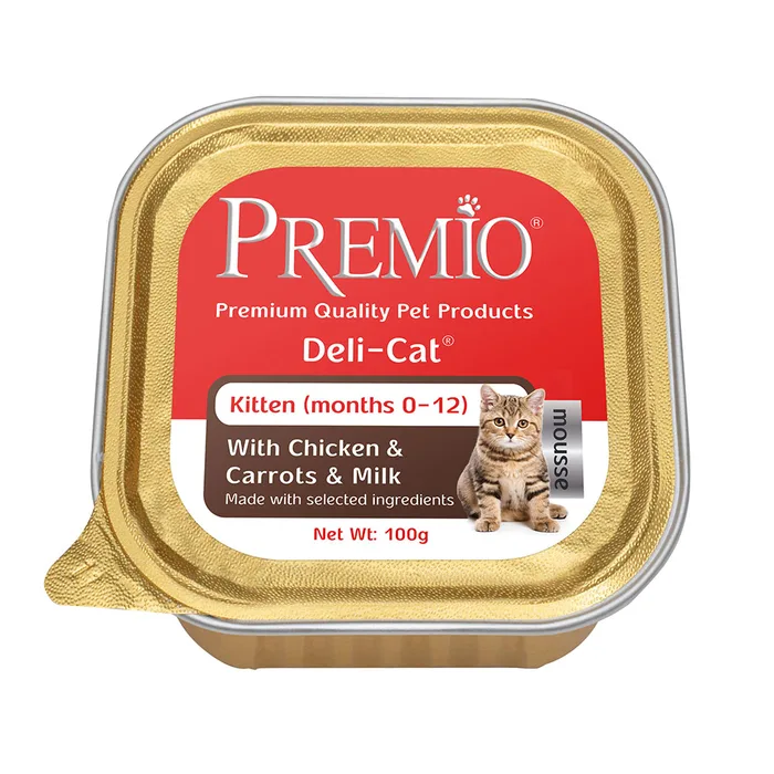 Premio - שימורי פטה לחתלתולים בטעם עוף חלב וגזר גרם 100