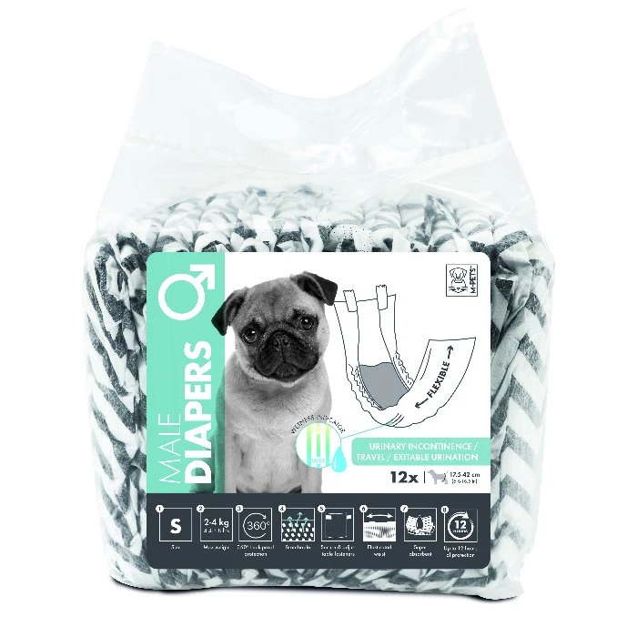 חיתולים לזכרים בגודל S עם פחם פעיל לספיגה מהירה וניטרול ריחות, לשמירה על ניקיון ונוחות החתול.