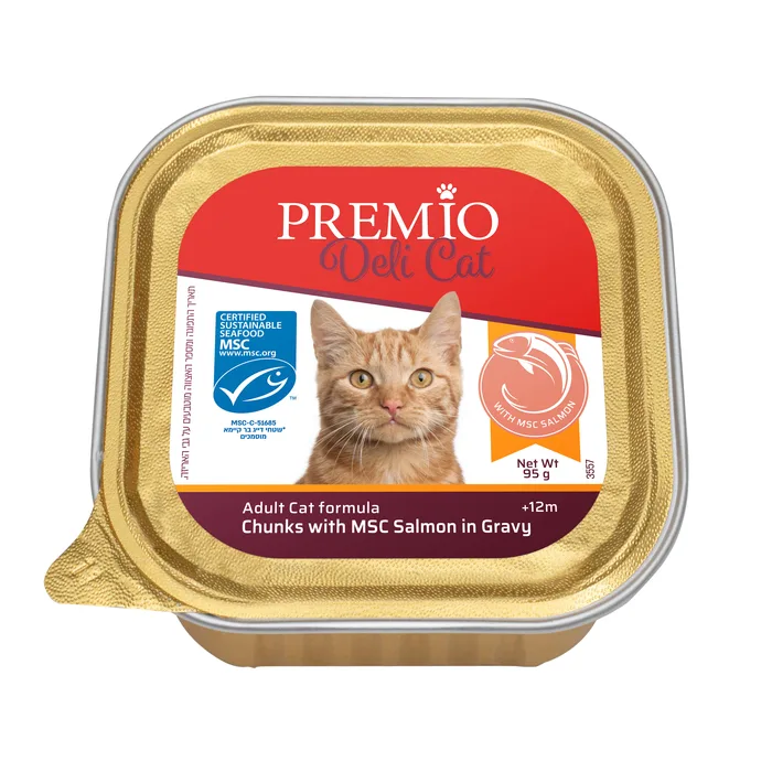 Premio - שימורי מזון מלא 95 גרם לחתול בוגר בטעם סלמון ברוטב