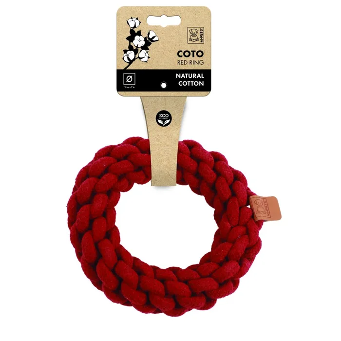 טבעת אדומה מבית Coto בקוטר 18 ס״מ היא צעצוע איכותי ואינטראקטיבי לכלבים שאוהבים משחק פעיל ונשיכה.