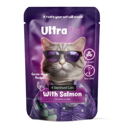 פאוץ אולטרה פט סטרלייז סלמון לחתול 85 גרם