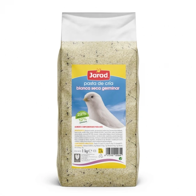 מזון ביצים לבן מיובש Jarad – 1 ק"ג, פורמולה מיוחדת ועשירה, המיועדת לציפורים בתקופת הרבייה והגידול.