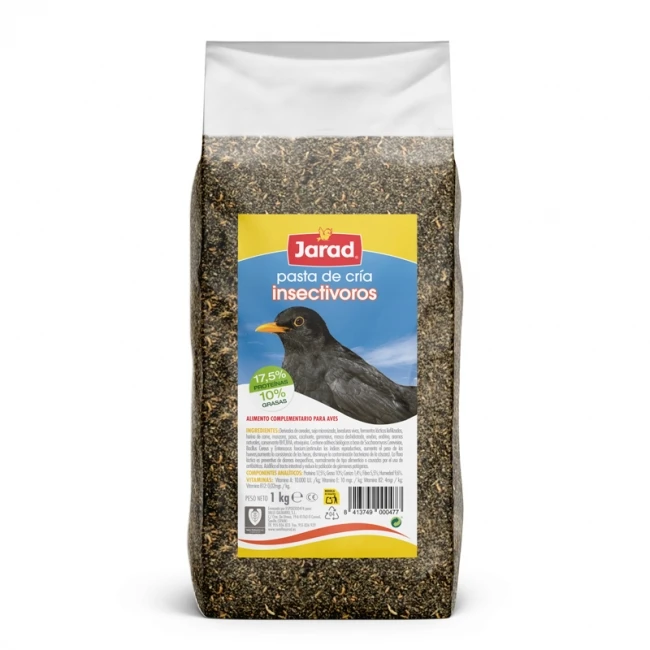 פטה חרקים Jarad – 500 גרם, פורמולה עשירה בחלבונים מן החרקים, ויטמינים ומינרלים, המיועדת במיוחד לציפורים אוכלי חרקים כמו דררות, תוכים וציפורי שיר.