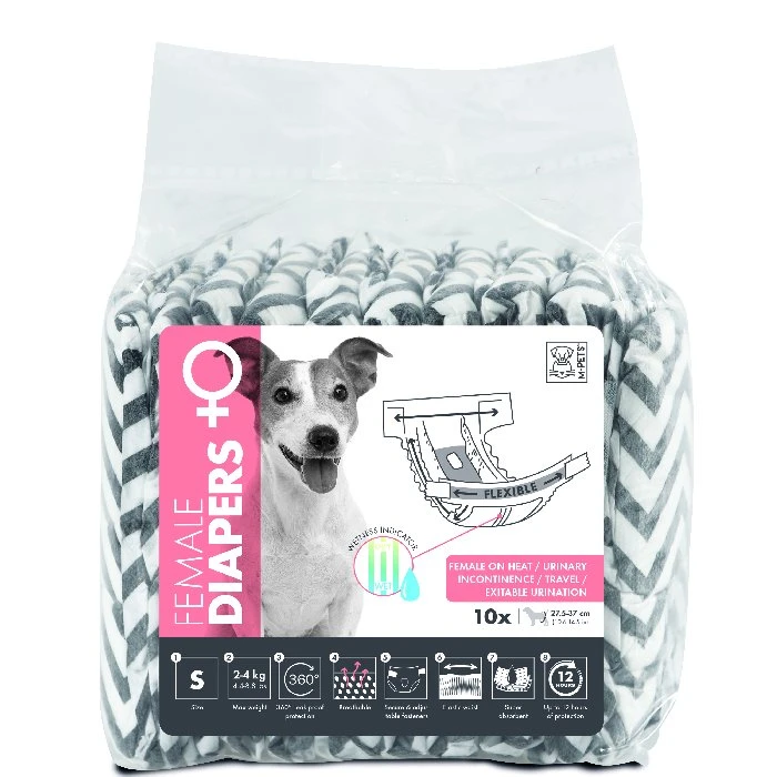 חיתולים לנקבות בגודל S עם פחם פעיל לספיגה מהירה וניטרול ריחות, לשמירה על ניקיון ונוחות החתולה.